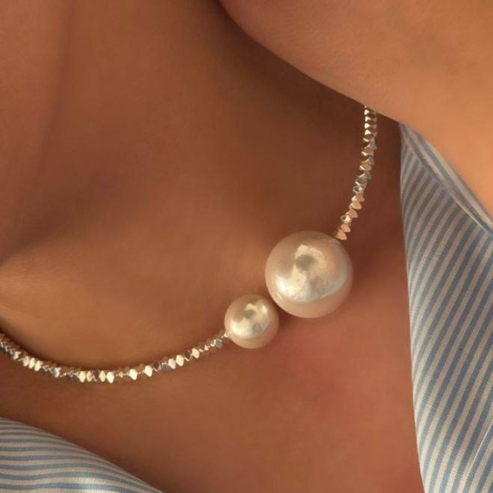گردنبند مرواریدی با پلاک صدف jl25-ne-0010