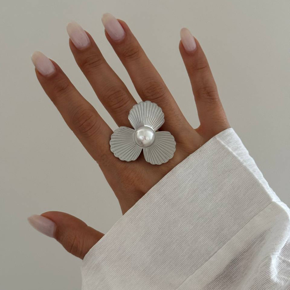 انگشتر گل استیل نقره ای ag25-ri-0072